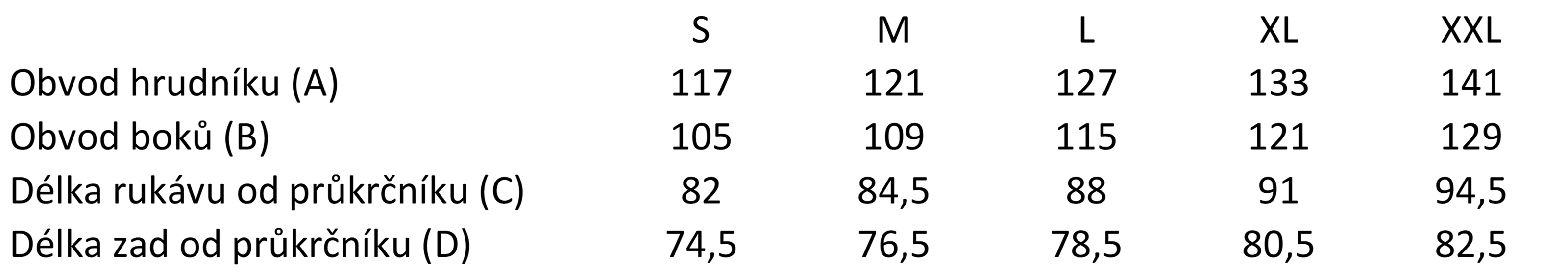 Délka rukávu od průkrčníku (C) Délka zadního dílu od průkrčníku (D)Délku rukávu je potřeba měřit (podle obrázku) od průkrčníku!